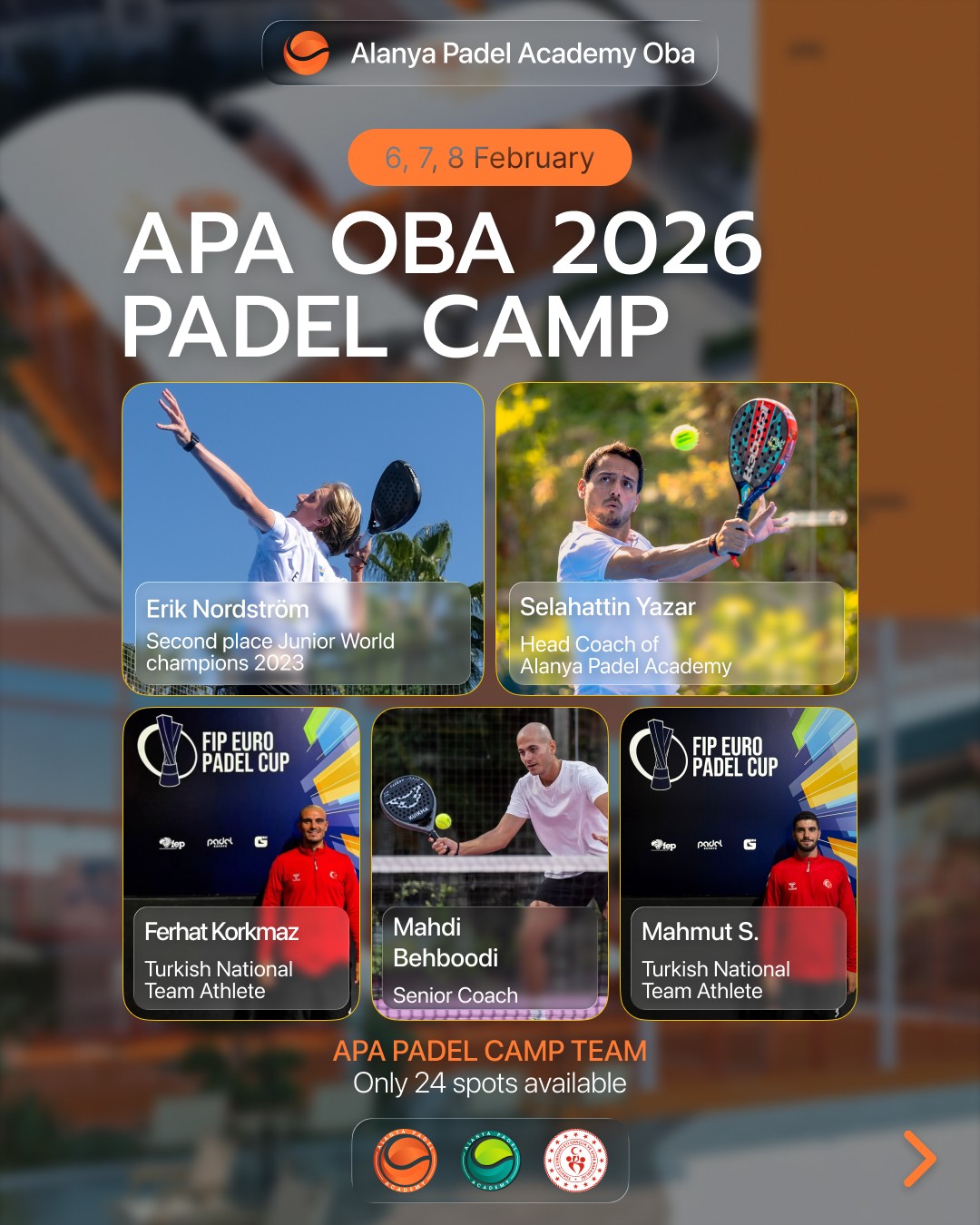 APA Oba Padel Kampı – 6, 7, 8 Şubat 2026 Alanya’da padel seviyenizi bir üst noktaya taşıyacak bu özel kampa katılın!