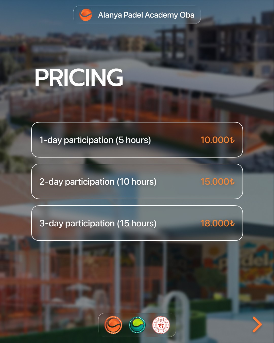 3 günlük katılım (15 saat): 18.000₺