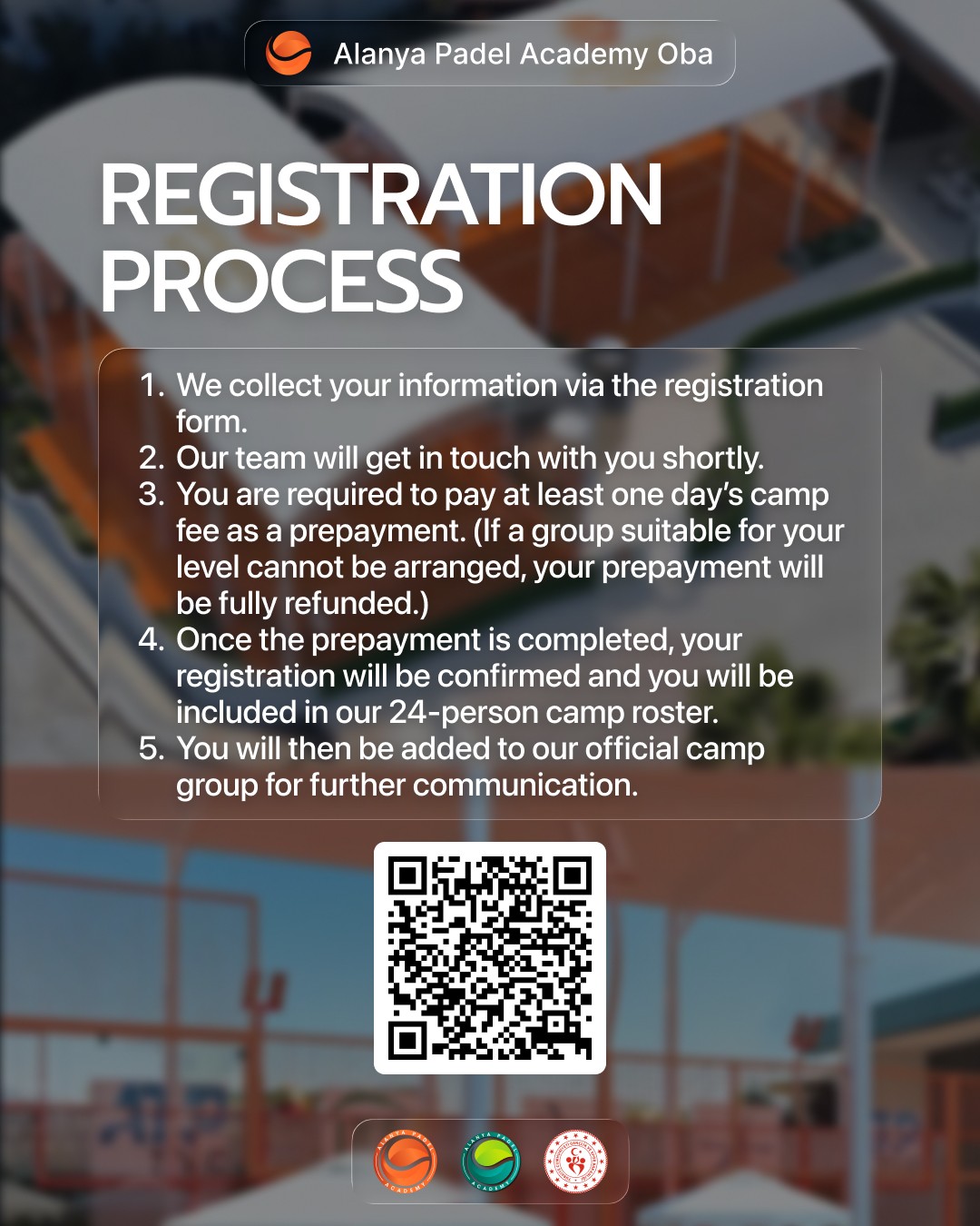 Ön ödeme tamamlandığında kaydınız onaylanır ve 24 kişilik kamp kadrosuna dahil edilirsiniz.